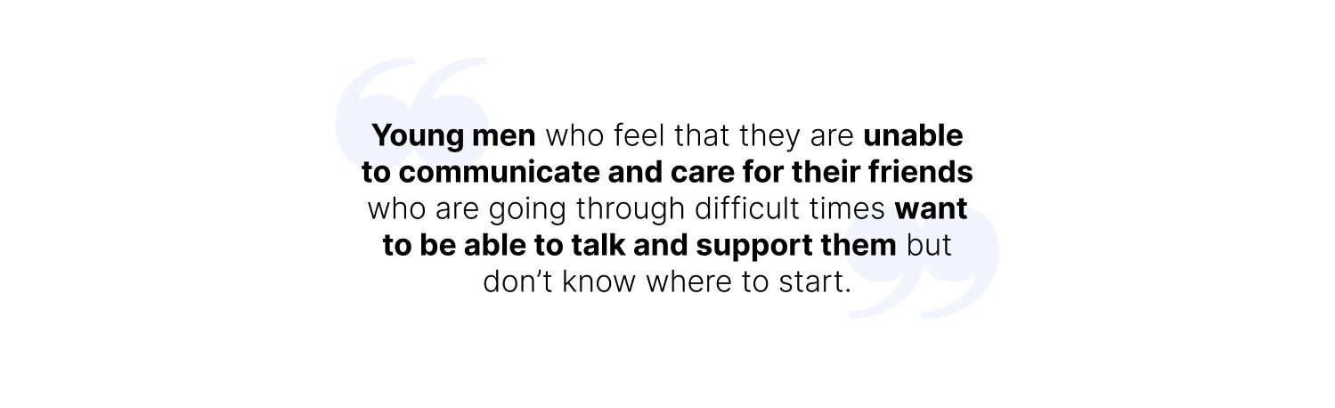 "Young men who feel that they are unable to communicate and care for their friends who are going through difficult times want to be able to direct them to support channels but don’t know where to start".