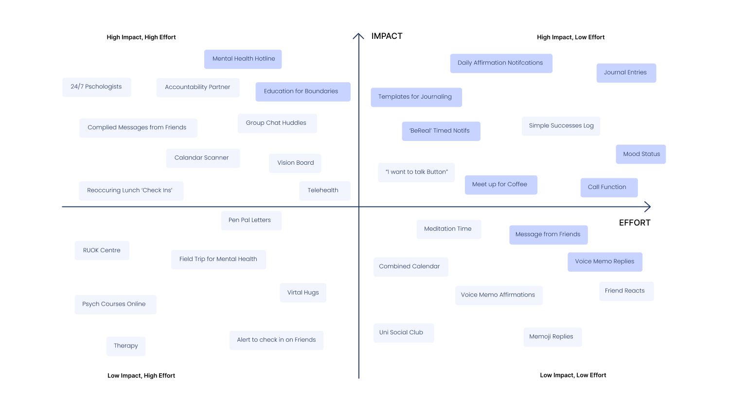 The general aim of these workshops were to brainstorm features that would help to alleviate some of the common problems young adults face when talking about their mental health to their peers.