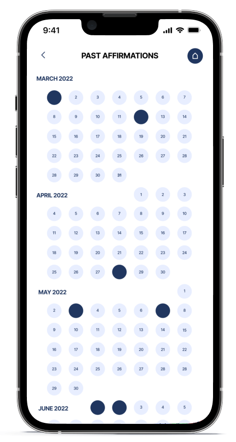 Originally, affirmations were single line statements that didn't hold alot of value. After a card sort with potential users they were altered to minimal, brightly coloured pictures.