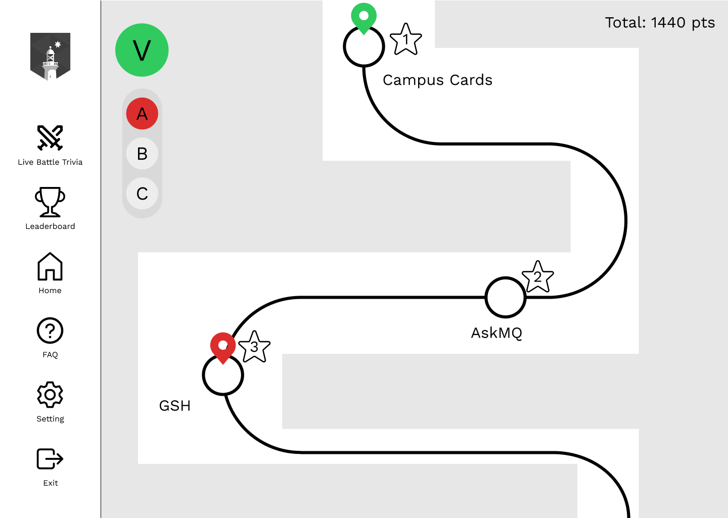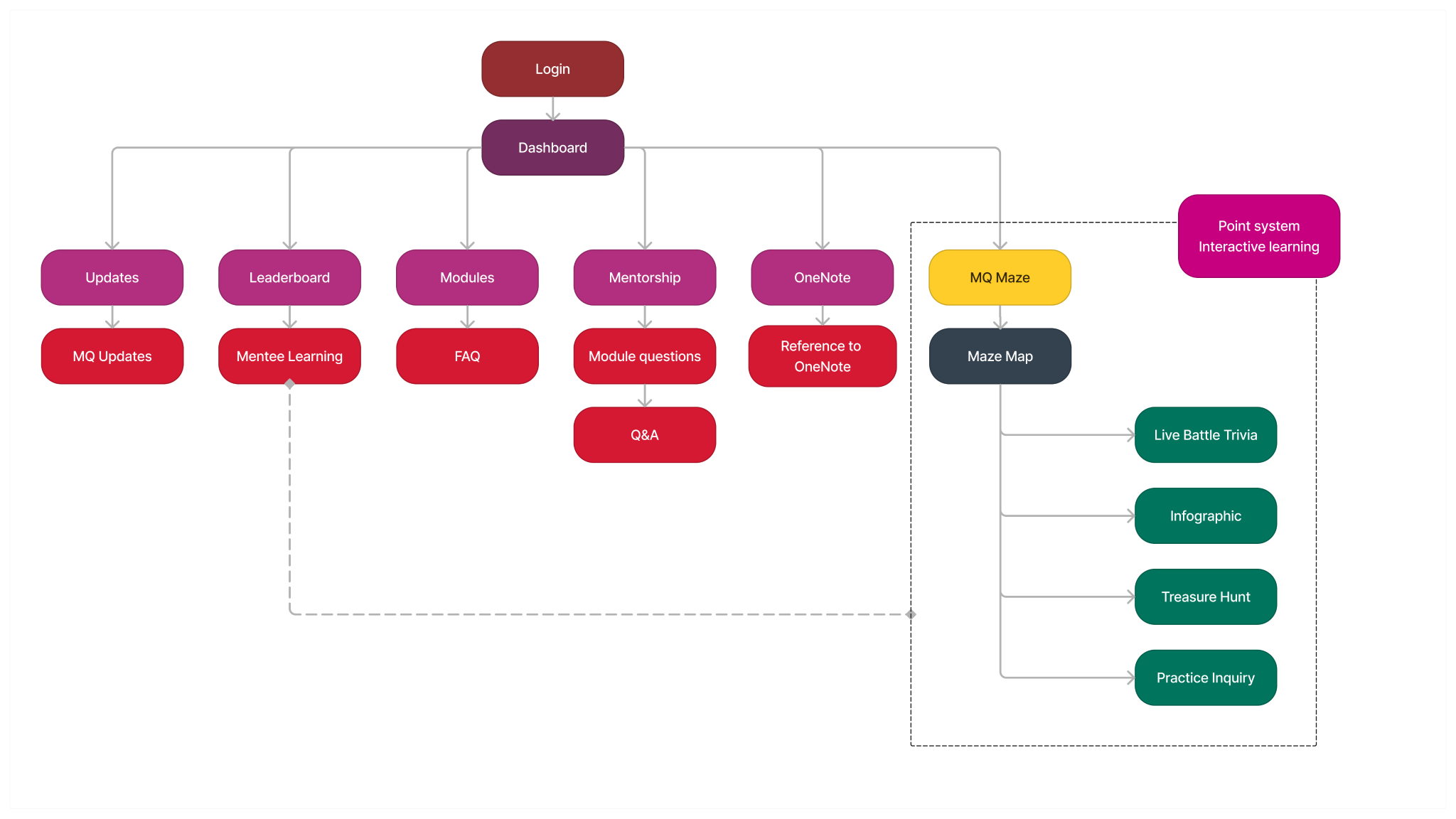 Although well recieved, staff had some issues figuring out where to go, and what games linked to which objectives. We worked to clarify this by including a seperate onboarding map so staff were able to refer back and view their progress.