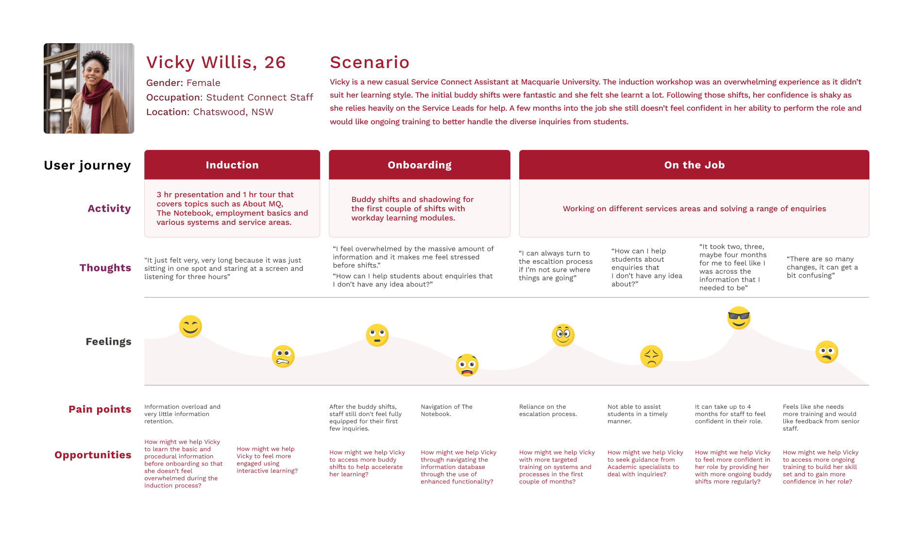 The primary objective of the project was to enhance MQ’s current induction framework by equipping staff with the confidence, knowledge and tools to provide higher quality customer service and care to students.