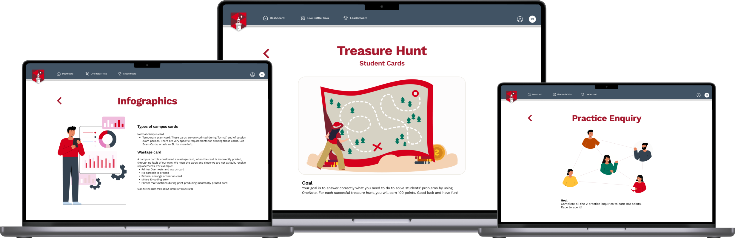 We decided to separate the Live Battle Trivia game from the independent learning objectives to provide staff the opportunity to engage in friendly competitive learning.