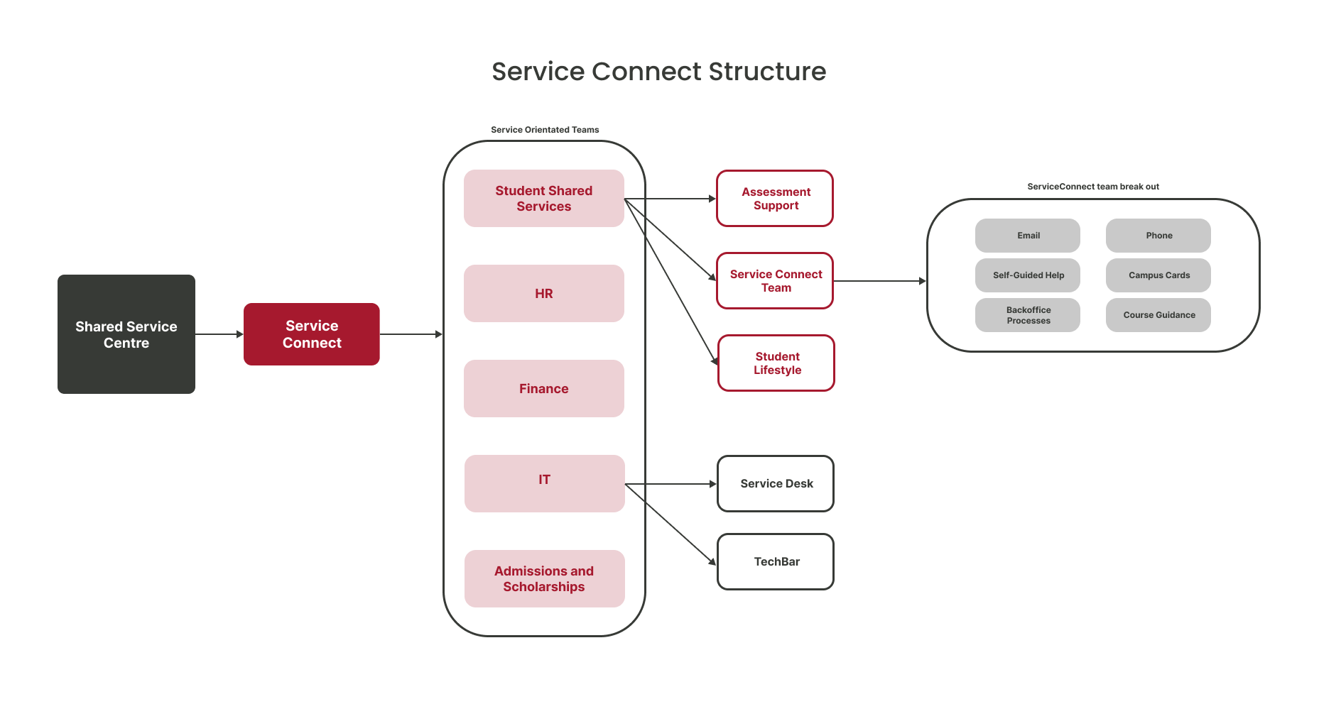 Due to the centralisation of Service Connect, onboarding and induction hasn’t been standardised across all Service Connect teams, making training inefficient and ineffective for newly recruited staff members. As a result of this, students have been reporting a lack of faith in staff's reliability to provide them with the correct answers.